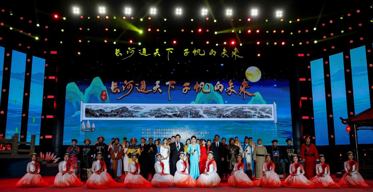整台演出以诗歌朗诵、情景演出为主, ,,,,,,伴以视频配景、舞蹈歌曲等艺术样态, ,,,,,,营造深情回忆、重感昔时的感人场景, ,,,,,,追求凝练深邃、恢弘大气、激情高昂、高昂向上的艺术效果, ,,,,,,让观众爆发深切忖量、深情绪人、深邃引发的情绪共识, ,,,,,,展现了千年运河的海浪惊涛和淮安城源远流长的文化意蕴。。。。。。
